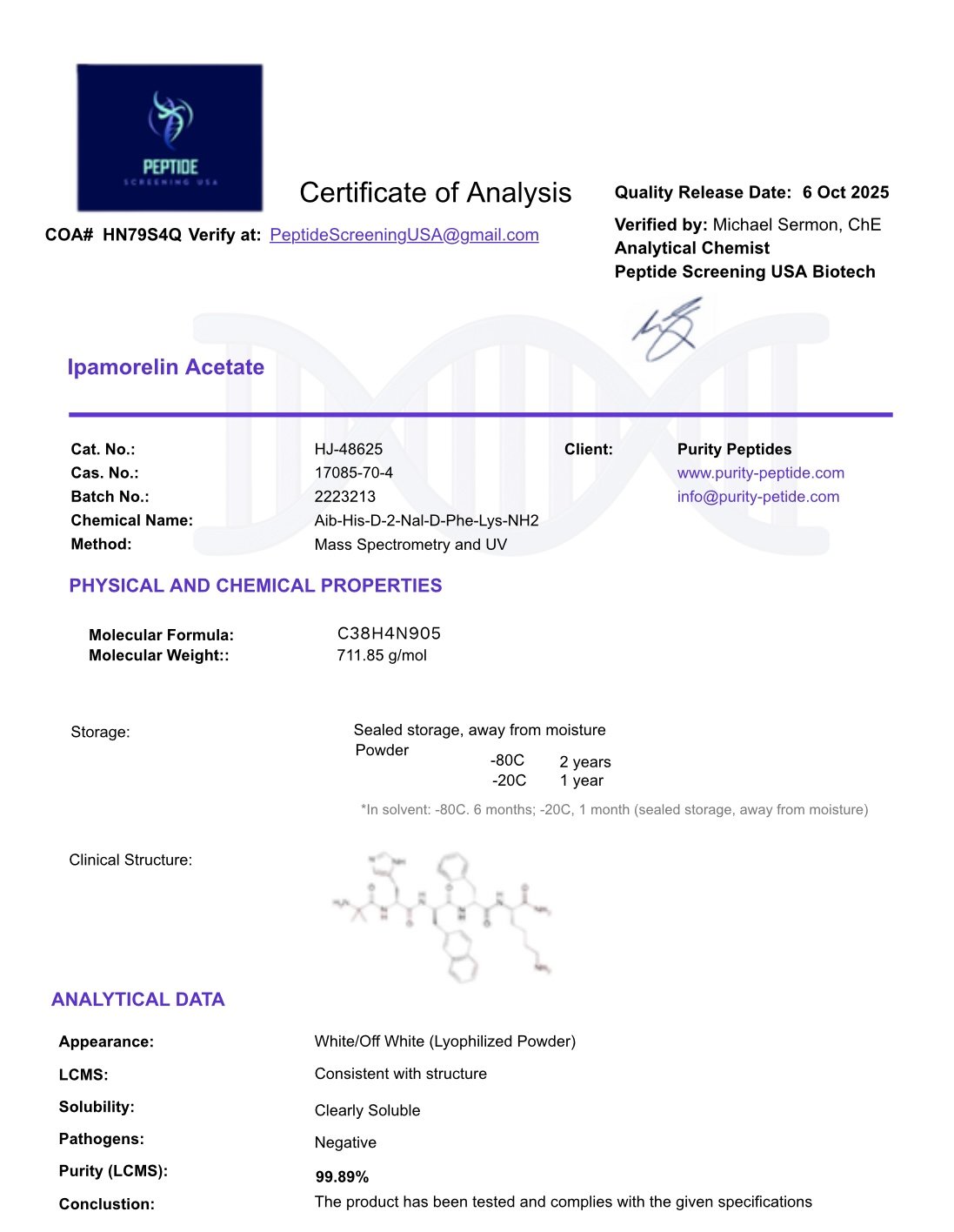 1Selective growth hormone–releasing research peptide. Made in lyophilized form.