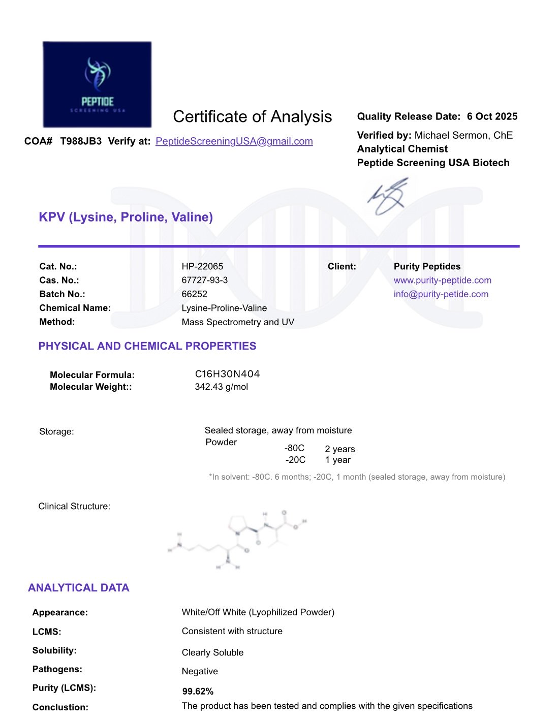 Quadruple peptide blend of (BPC-157 10mg/TB-500 10mg/GHK-CU 50mg/KPV 10mg) at 80mg total content. Made in lyophilized form.