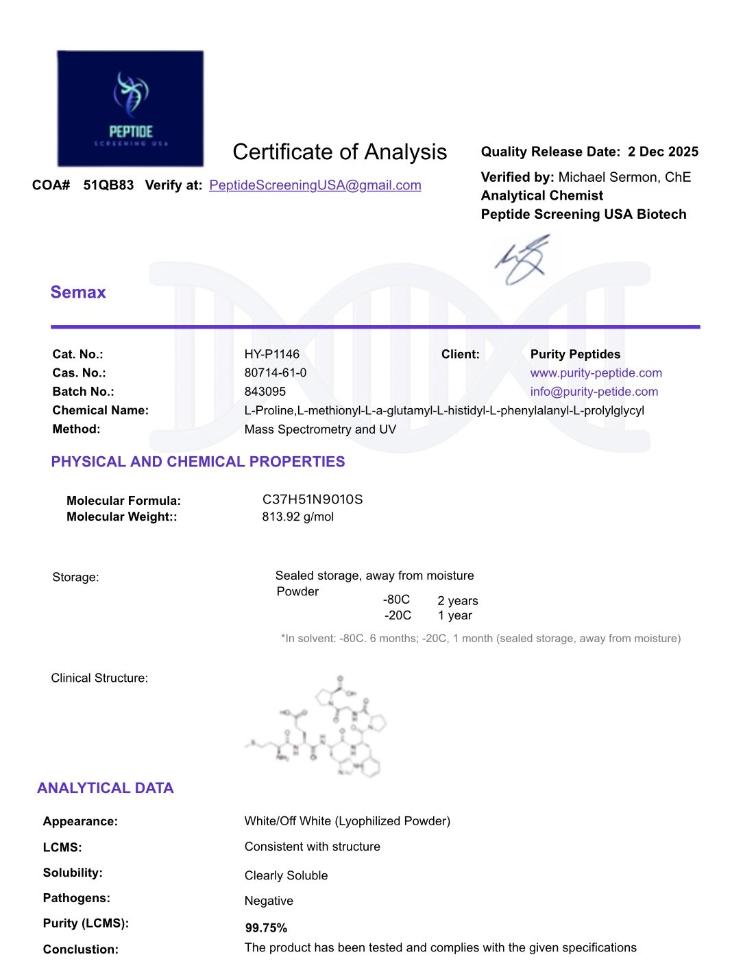 Heptapeptide derivative of ACTH(4–10). Made in lyophilized form.